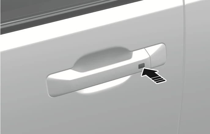 Кнопка на ручке двери или датчик касания будет работать только в том случае, если электронный ключ находится в пределах 1 м (40 дюймов) от наружной ручки двери.