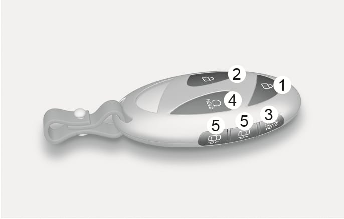 Нажмите и удерживайте кнопку открывания/закрывания двери багажного отделения (3) на электронном ключе, чтобы закрыть открытую дверь. Если отпустить кнопку во время закрывания двери багажного отделения, операция прекратится с предупреждающим звуковым сигналом длительностью в 5 секунд.