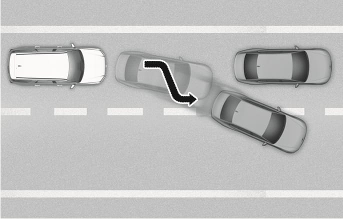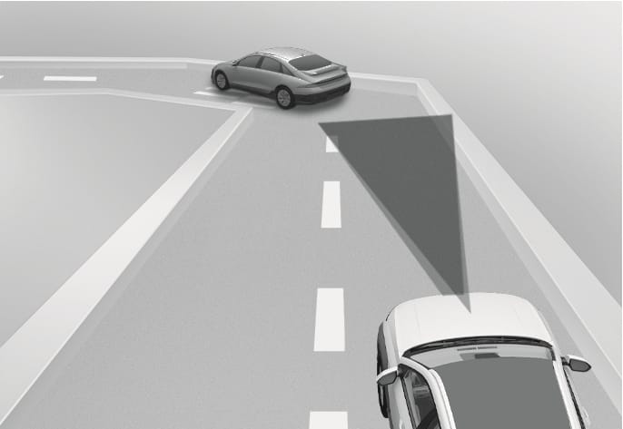 When a vehicle moves into your lane from an adjacent lane, it cannot be detected by the sensor until it is in the sensor's detection range. Smart Cruise Control may not immediately detect the vehicle when the vehicle changes lanes abruptly. In this case, you must maintain a safe braking distance, and if necessary, depress the brake pedal to reduce your driving speed in order to maintain a safe distance.