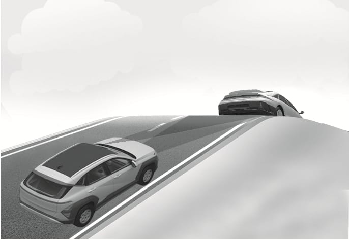 When a vehicle in front of you merges out of the lane, Forward Collision-Avoidance Assist may not immediately detect the vehicle that is now in front of you. In this case, you must maintain a safe braking distance, and if necessary, steer your vehicle and depress the brake pedal to reduce your driving speed in order to maintain a safe distance.