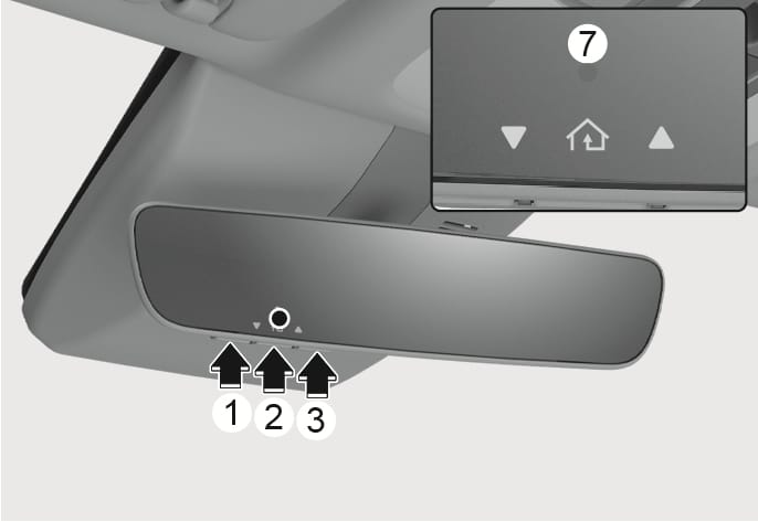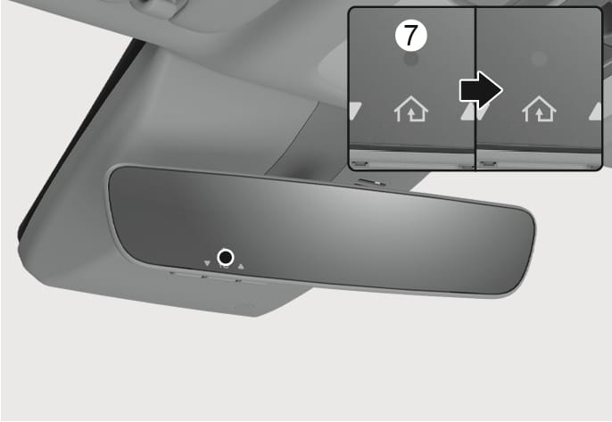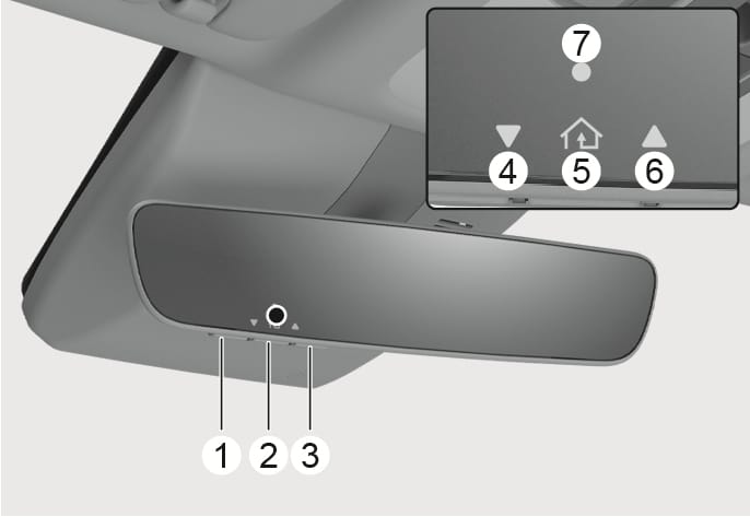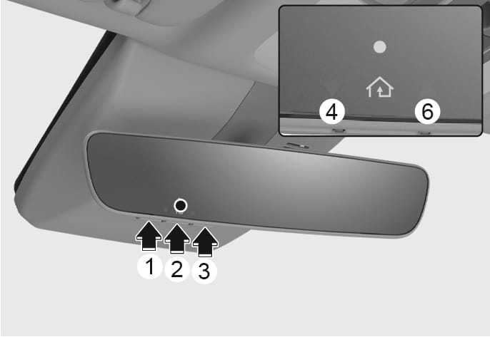 If the indicator (4) or (6) does not turn to green, it indicates that the last status of garage door was not received properly. The HomeLink mirror tries to receive the last known status of the garage door for a few seconds.