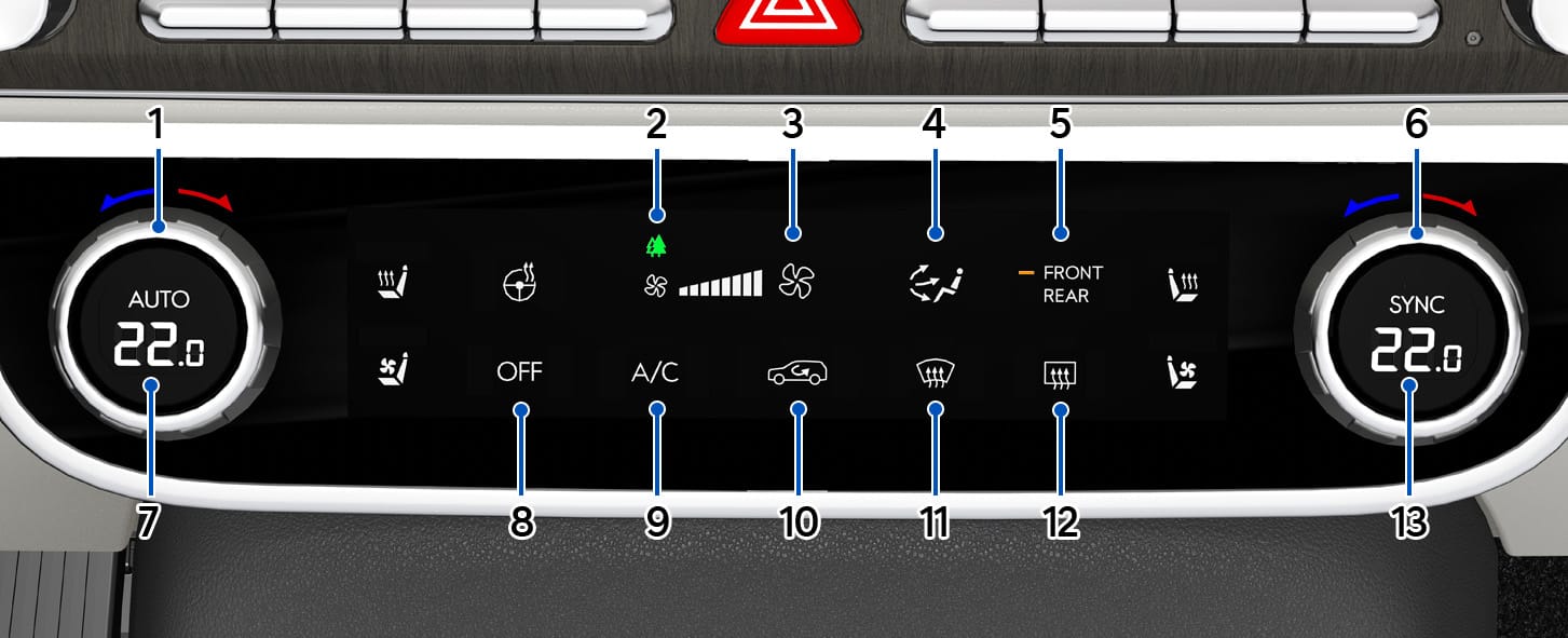 - SYNC(운전석 기준 동일 제어)/동승석 설정온도 표시창