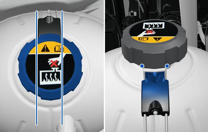 냉각수를 보충하거나 교체한 후 보조 탱크 캡을 완전히 잠그십시오. 캡이 완전히 잠기지 않으면 주행 중 냉각수가 넘쳐 엔진이 과열될 수 있습니다.