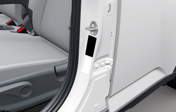 운전석 문을 연 후 센터 필러에 부착된 라벨에서 차량의 권장 타이어 공기압 정보를 확인할 수 있습니다.
