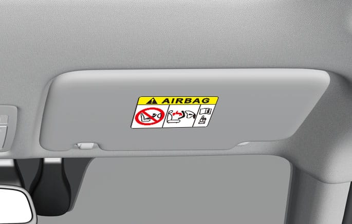 에어백 작동 시의 위험을 알리기 위해, 차량의 선바이저에 에어백 경고 라벨이 부착되어 있습니다.