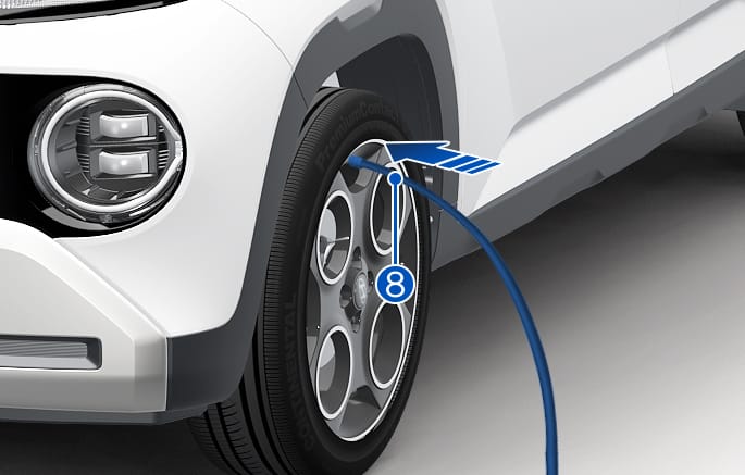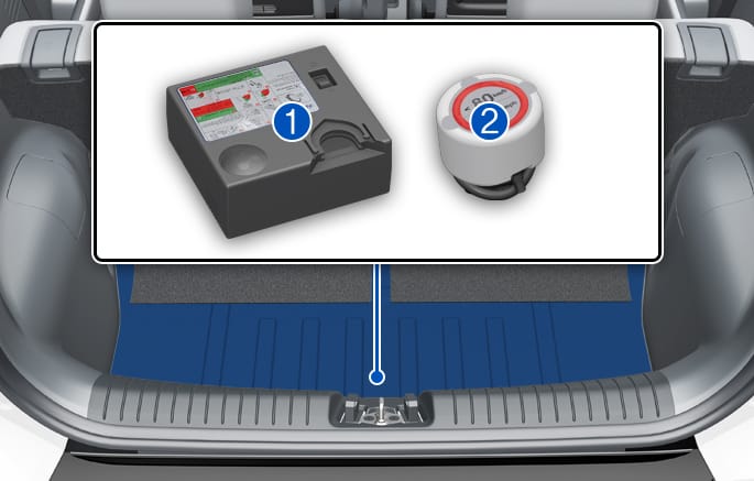 주행 중 타이어가 손상된 경우 타이어 응급 처치 키트를 사용해 수리한 후 당사 직영 하이테크센터나 블루핸즈에서 차량을 점검하십시오.