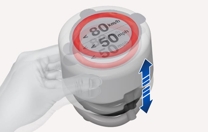 속도 제한 표시 라벨을 컴프레서에서 떼어내어 잘 보이는 곳에 부착하고 주행 중 제한 속도를 준수하십시오.