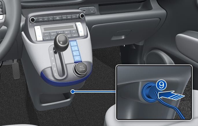 다용도 소켓 연결 커넥터(9)를 차량의 다용도 소켓에 연결하십시오.