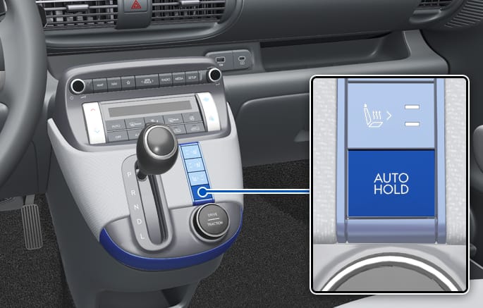 정차 중 브레이크 페달을 밟은 상태로 AUTO HOLD 버튼을 누르십시오.