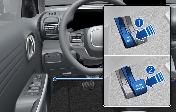 주차 브레이크 페달을 한번 더 끝까지 밟은 다음 발을 떼어내십시오.