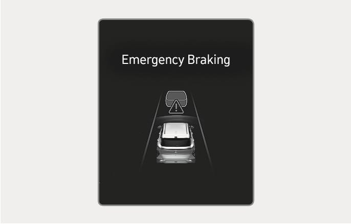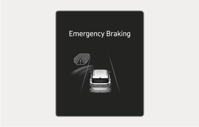 To warn the driver that emergency braking will be assisted, the "Emergency Braking" warning message appears and the (