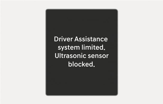 Pay close attention when driving near objects, pedestrians, and especially children. Some objects may not be detected by the ultrasonic sensors, due to the objects distance, size or material, all of which can limit the effectiveness of the sensor.