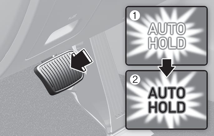 기어 'D'(주행), 'N'(중립), 'R'(후진) 또는 수동 변속 모드에서 브레이크 페달을 밟아 차량이 정지한 후 브레이크 페달에서 발을 떼어도 정지 상태를 계속 유지하는 기능입니다.