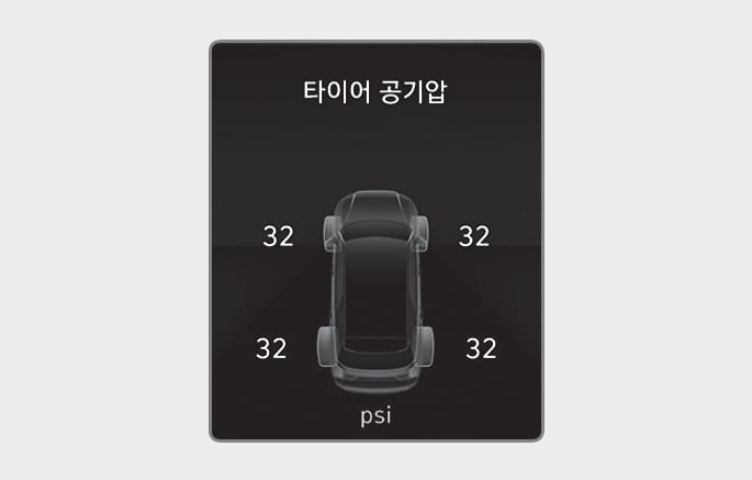 클러스터를 통해서 개별 타이어 공기압을 확인할 수 있습니다.