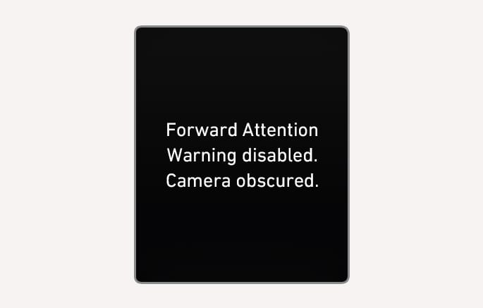 When there is an object right in front of the in-cabin camera or between the driver and the camera for a certain period of time, Forward Attention Warning does not operate properly, and the "Forward Attention Warning disabled. Camera obscured" warning message appears on the instrument cluster, and an audible warning sounds.