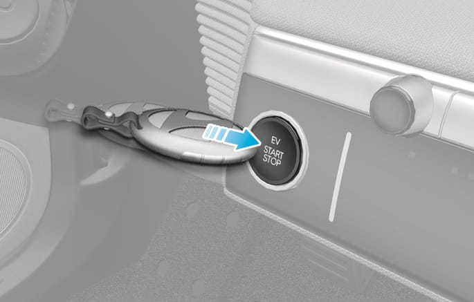 Wenn die Batterie des Smart-Keys erschöpft ist oder der Smart-Key nicht richtig funktioniert, können Sie das Fahrzeug starten, indem Sie die Start/Stopp-Taste mit dem Smart-Key wie in der Abbildung oben drücken.