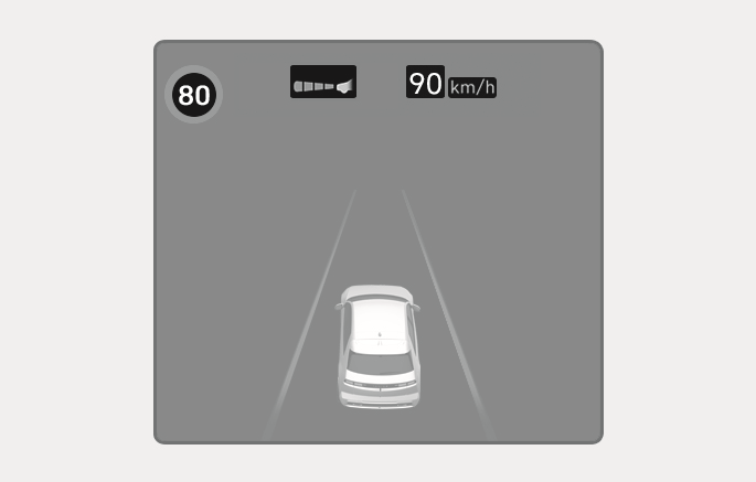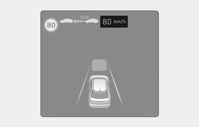Selbst nach Ändern der eingestellten Geschwindigkeit gemäß dem Tempolimit der Straße kann das Fahrzeug immer noch schneller als das Tempolimit gefahren werden. Betätigen Sie gegebenenfalls das Bremspedal, um die Fahrgeschwindigkeit zu verringern.