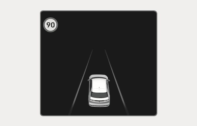 Der manuelle Geschwindigkeitsbegrenzungsassistent oder die Intelligente Tempomatsteuerung unterstützt das Fahrzeug bei der Anpassung der Geschwindigkeit an die Geschwindigkeitsbegrenzung. Wenn die Reisegeschwindigkeit gleich der Geschwindigkeitsbegrenzung eingestellt ist, passt das Fahrzeug seine Geschwindigkeit automatisch an, wenn sich die Geschwindigkeitsbegrenzung ändert. Die Funktion funktioniert auf Straßen, die eine Geschwindigkeitsbegrenzung von 70 km/h (45 mph) oder höher haben. Wenn die Funktion aktiv ist, erscheint die Reisegeschwindigkeit im Kombiinstrument in grün.