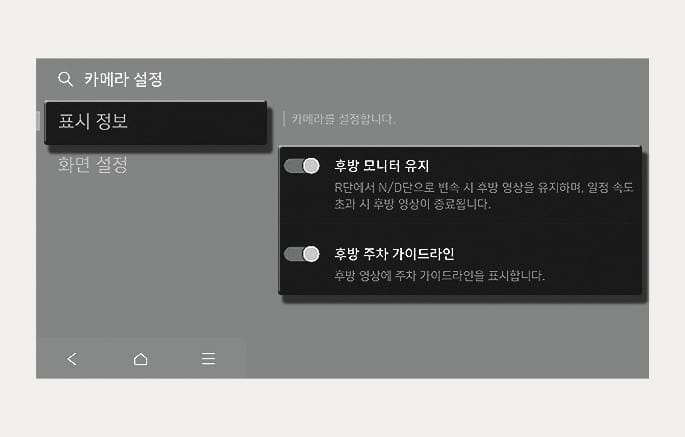 후방 모니터 유지, 후방 주차 가이드라인을 설정할 수 있습니다.