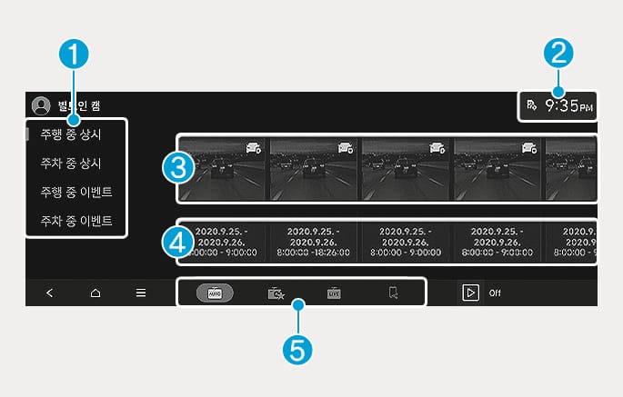 주차 중 상시: 주차 중 녹화 영상을 묶음으로 표시