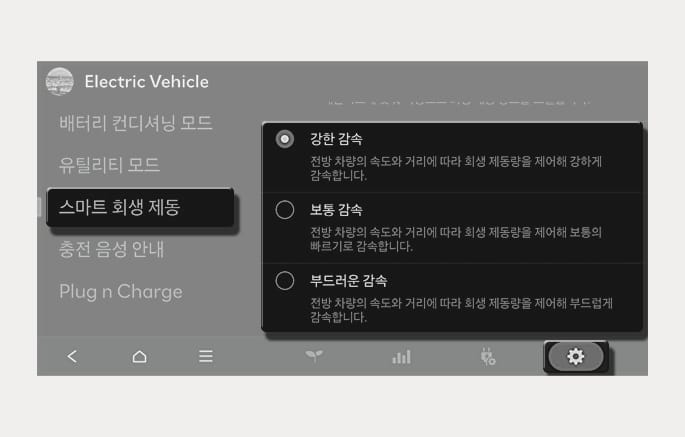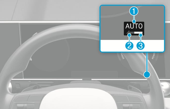 스마트 회생 시스템이 켜지면 클러스터에 ‘AUTO’ 문구가 표시되고, 작동 조건에 따라 회생 제동량이 조절됩니다.