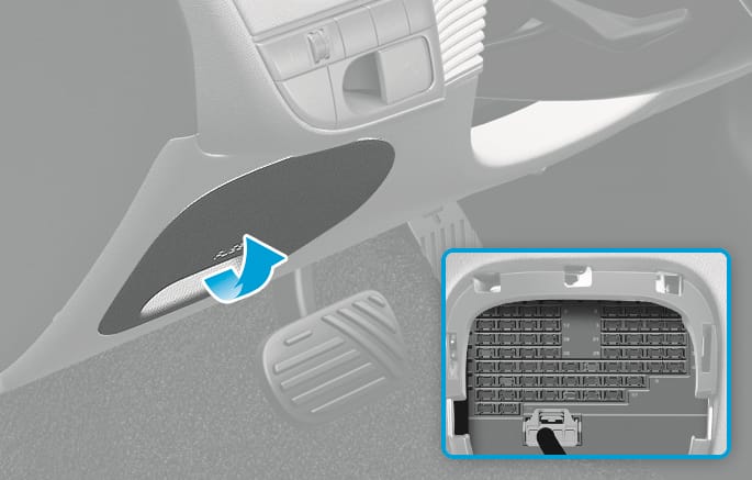 실내 퓨즈 박스는 운전석 왼쪽 하단에 있습니다.