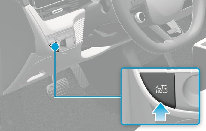 정차 중 브레이크 페달을 밟은 상태로 AUTO HOLD 버튼을 누르십시오.