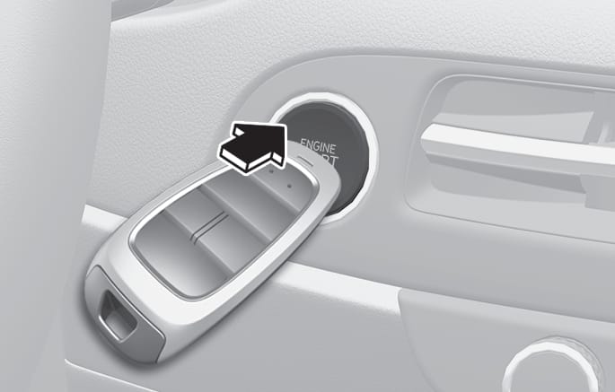 스마트 키의 배터리가 방전되거나 전자기기에 의한 전파 방해가 있어 시동이 걸리지 않을 경우, 스마트 키로 직접 시동 버튼을 누르십시오.