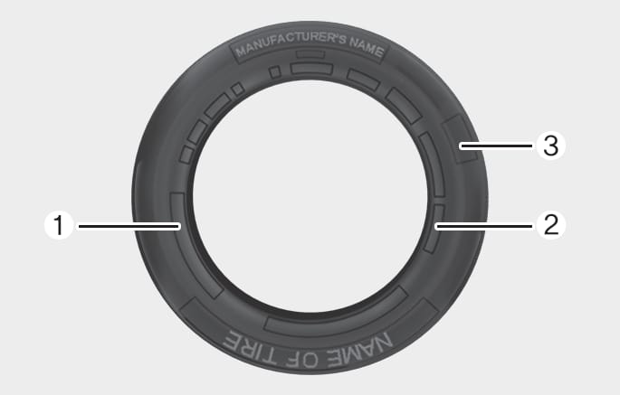타이어의 경우 제조일 기준으로 6년이 경과되면 자연적으로 노화되기 때문에 사용하지 않았더라도 임시 타이어를 포함하여 새 타이어로 교체해야 합니다. 이때 제조일을 확인하기 위해 타이어의 옆면에 DOT라는 표시를 양쪽면 중 한면에 삽입하도록 되어 있으며 이 표시는 영문 및 숫자로 구성되어 마지막 네 자리를 통해 제조일을 확인할 수 있습니다.