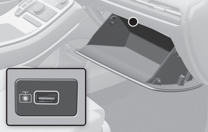 글로브 박스 내부 상단에 위치한 USB 단자를 이용하여 아래 기능을 수행합니다.