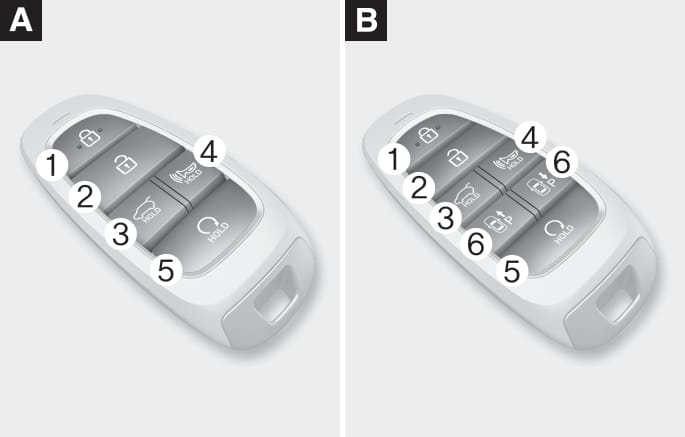 스마트 키는 휴대만으로 도어(테일게이트 포함)를 잠그거나 열고, 엔진 시동을 걸 수 있도록 고안된 장치입니다.