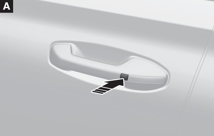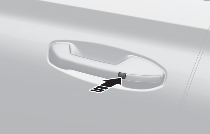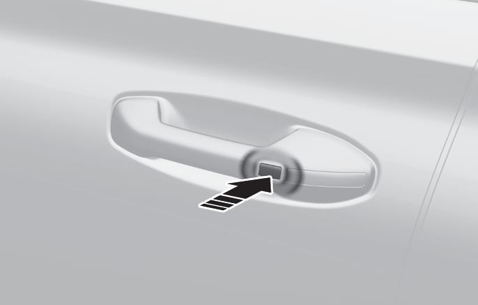 스마트 키를 휴대하고 앞좌석 도어의 바깥 손잡이에 도어 잠금 센서부(음각부분)를 터치하십시오.