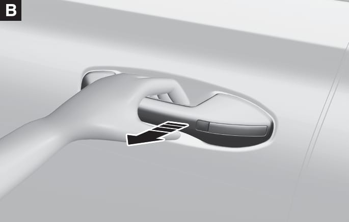 도어의 바깥쪽 도어 핸들을 잡아당겨 잠겼는지 확인하십시오.