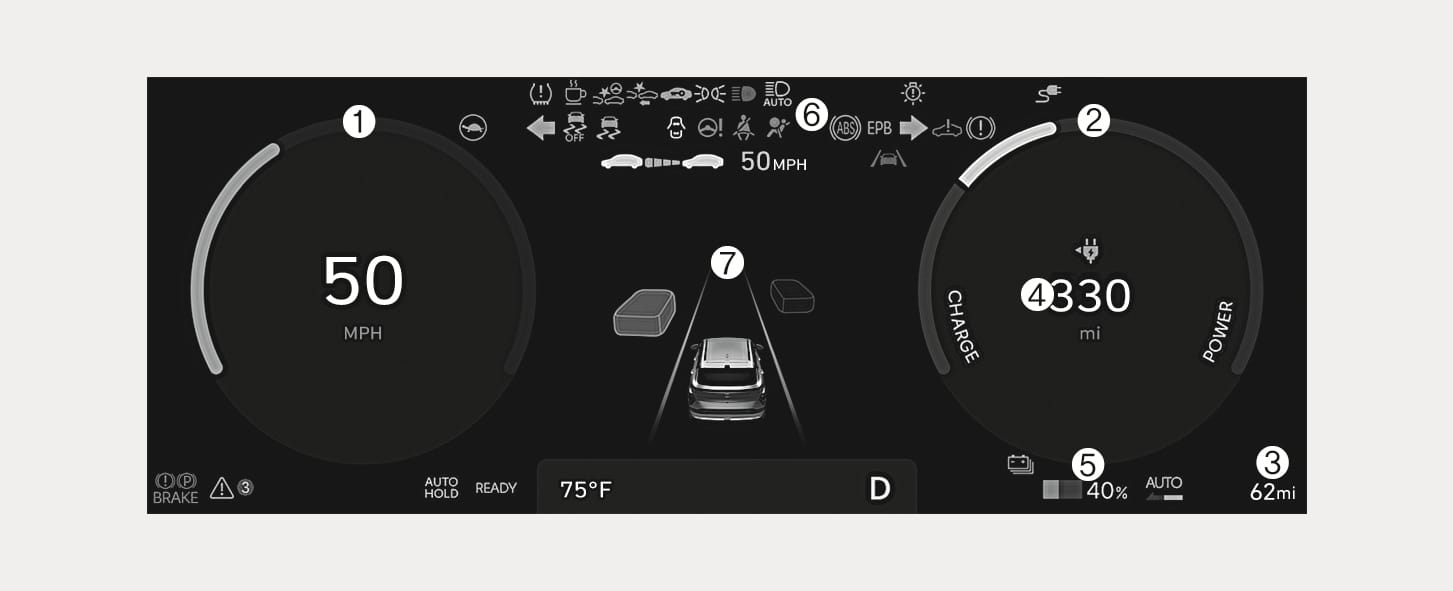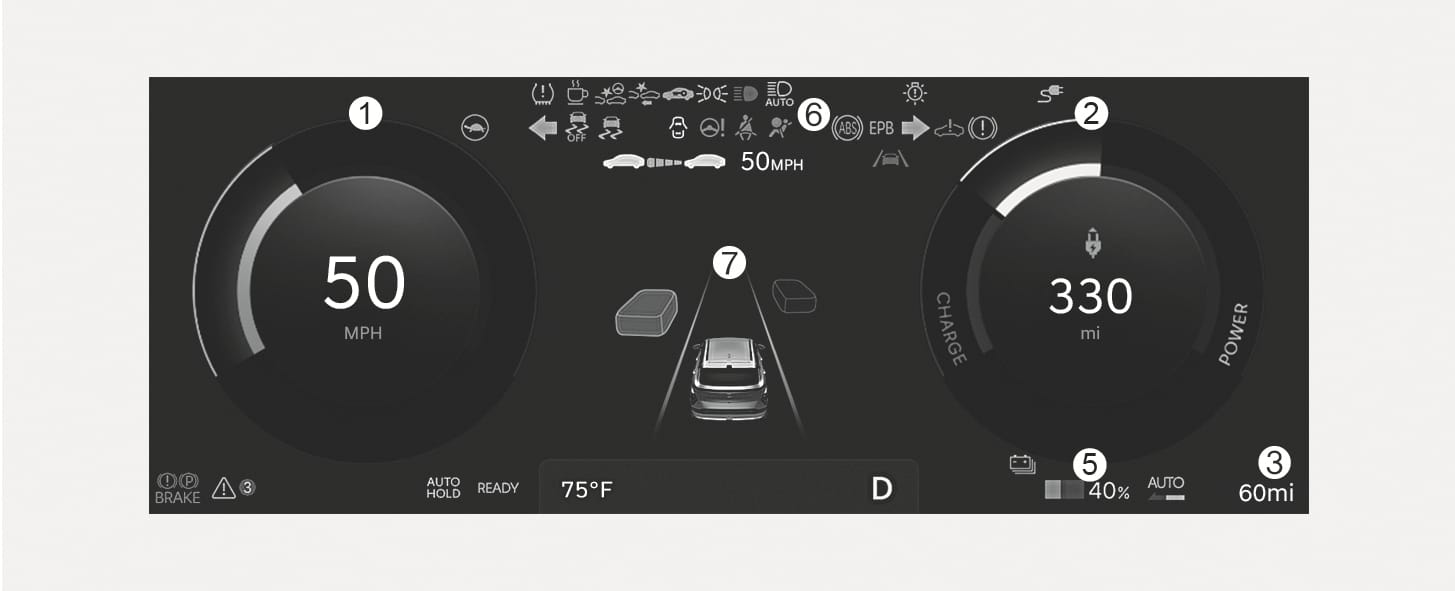 The actual cluster in the vehicle may differ from the illustration. For more information, refer to the "Gauges and Meters" section in this chapter.