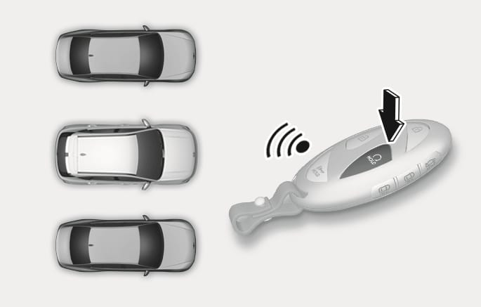 Press the Remote Start button after the door is locked with the vehicle off to start the vehicle remotely. Press the Remote Start button while Remote Smart Parking or Remote Operation function is operating to end function operation. |