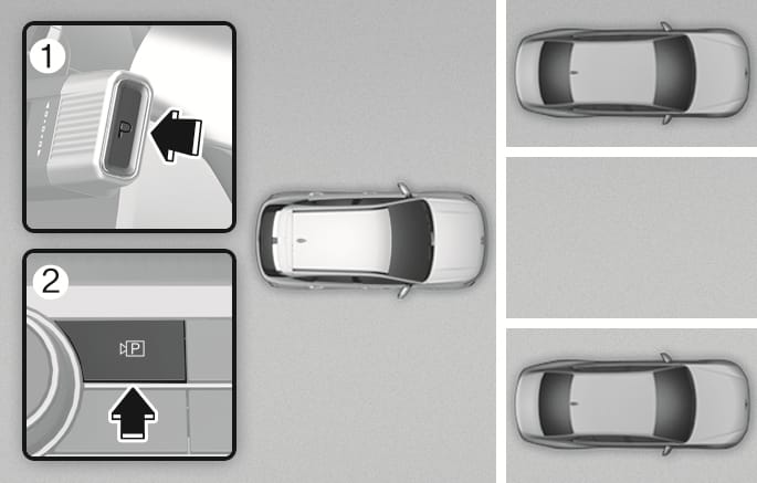 Park the vehicle in front of the space where you want to use Remote Operation function, and shift the gear to P (Park).