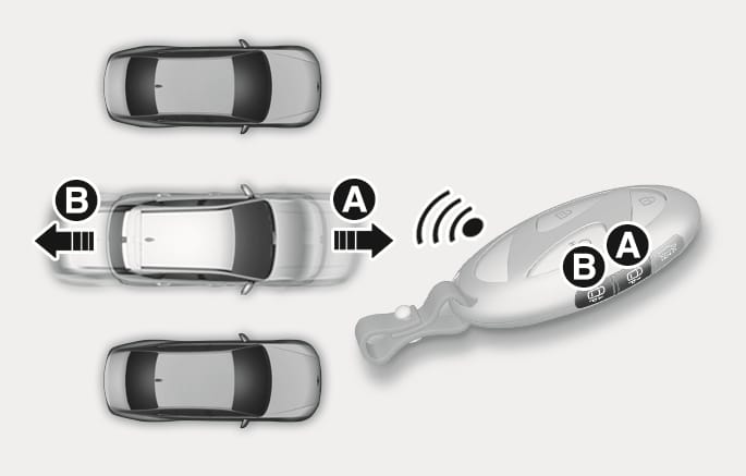 Remote Operation function will operate only when the smart key is within 13 ft. (4 m) from the vehicle. If there is no vehicle movement even when the Forward or Backward button is pressed on the smart key, check the distance to the vehicle and press the button again.