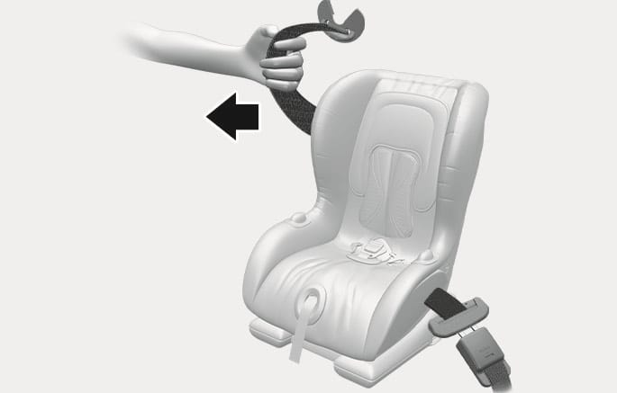 Push and pull on the Child Restraint System to confirm that the seat belt is holding it firmly in place. If it is not, release the seat belt and repeat steps 2 through 6.