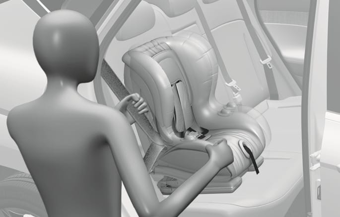 Place the Child Restraint System on a rear seat and route the lap/shoulder belt around or through the Child Restraint System, following the Child Restraint System manufacturer's instructions. Make sure the seat belt webbing is not twisted.