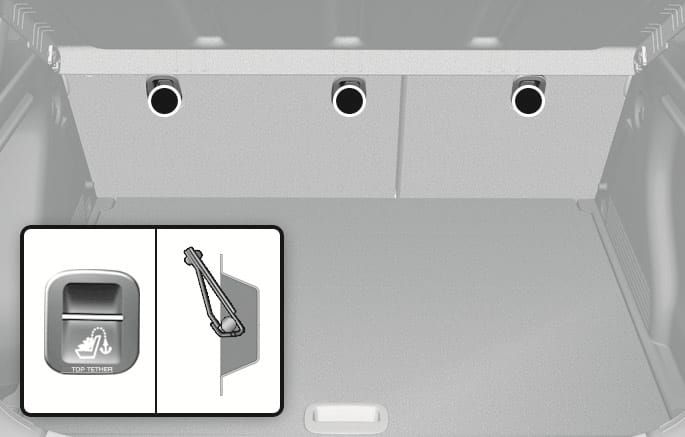 Connect the tether strap hook to the tether anchor, then tighten the top-tether strap according to the instructions of your Child Restraint System's manufacturer to firmly attach the Child Restraint System to the seat.