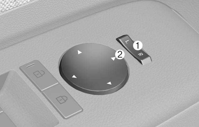 Press the switch (1) to the L (left side) or R (right side) to select the side view mirror you want to adjust.