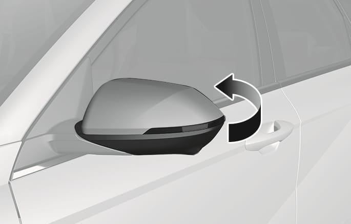 To fold the side view mirror, grasp the housing of the mirror and then fold it toward the rear of the vehicle.