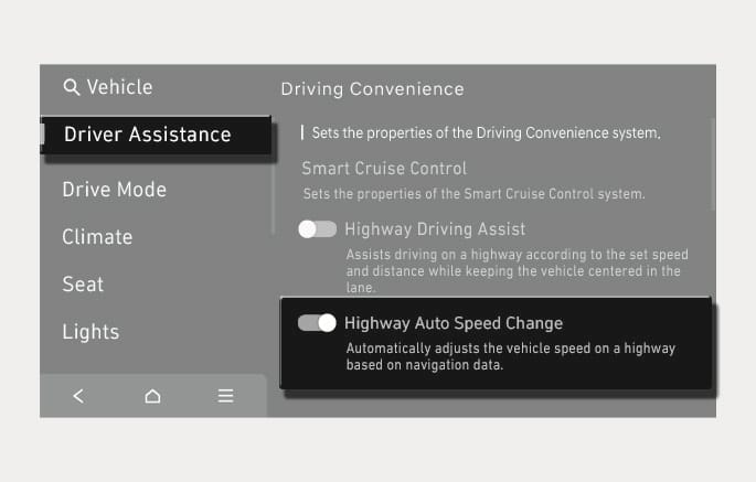 When there is a problem with Navigation-based Smart Cruise Control, the function cannot be set in the infotainment system.