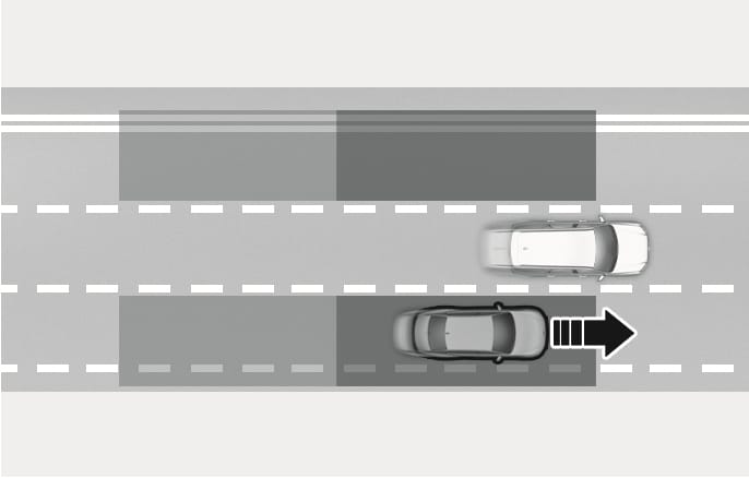 The detecting range may vary depending on the speed of your vehicle. Even if there is a vehicle in the blind spot area, Blind-Spot Collision-Avoidance Assist may not warn you when you pass by at high speeds.