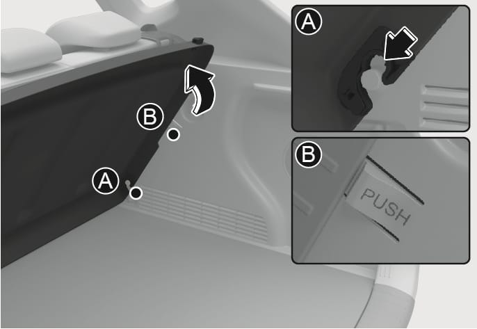 To release the cargo security screen, press the stopper (B), lower the cover, and pull out the cover diagonally.