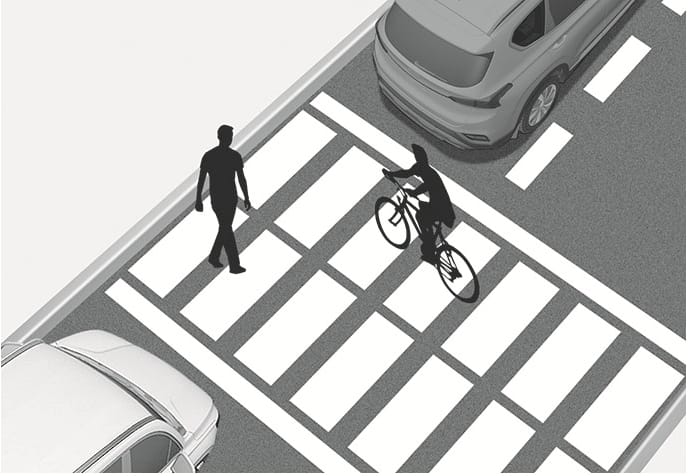 When a pedestrian or bicycle is between you and the vehicle ahead