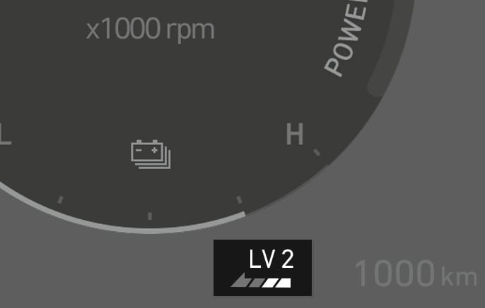 Pull the right paddle shifter (+) once to lower the regenerative braking intensity level by 1. It decreases decelerating intensity.