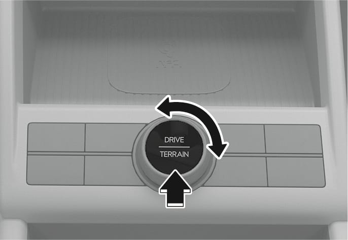 Der Modus ändert sich wie folgt, wenn der DRIVE MODE-Taste (oder DRIVE/TERRAIN) nach rechts oder links gedreht wird.