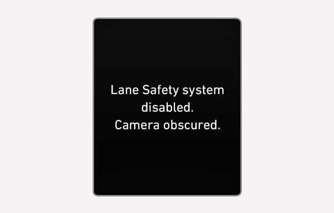 If this occurs, the "Lane Safety system disabled. Camera obscured." warning message and the master (