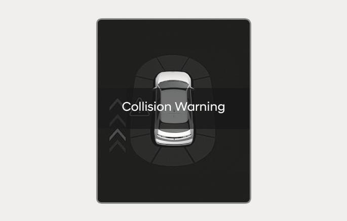 When an approaching vehicle from the rear is detected at the moment a door is opened, the "Collision Warning" warning message will appear on the cluster, and an audible warning will sound.